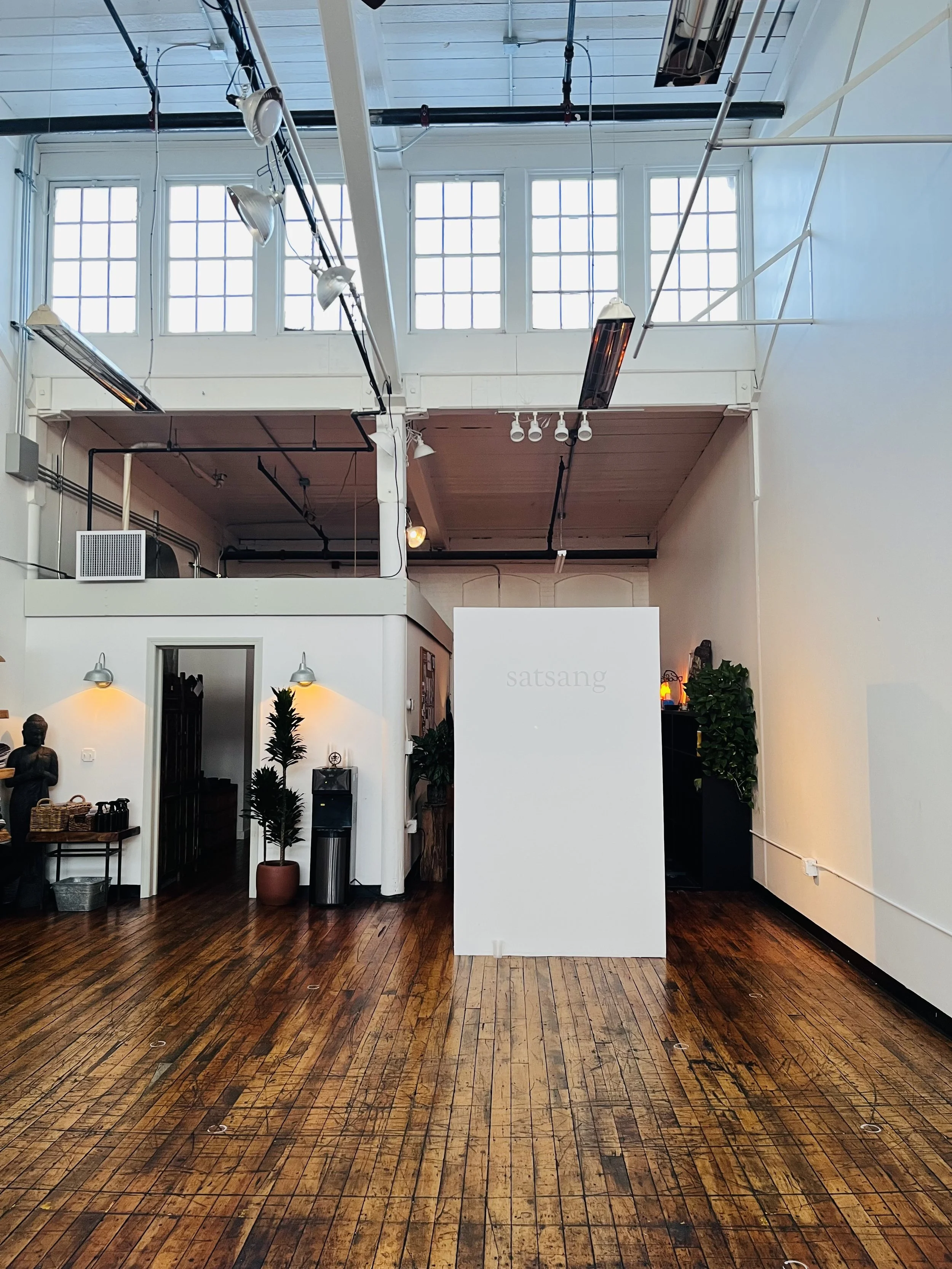 Satsang Yoga is a community-centered space located in Hope Artiste Village dedicated to offering yoga, meditation, kirtan, and dharma talks rooted in Hindu and Buddhist traditions. Our purpose is to serve our students by providing a safe, sacred, and supportive environment where they can explore their personal journey toward self-realization.