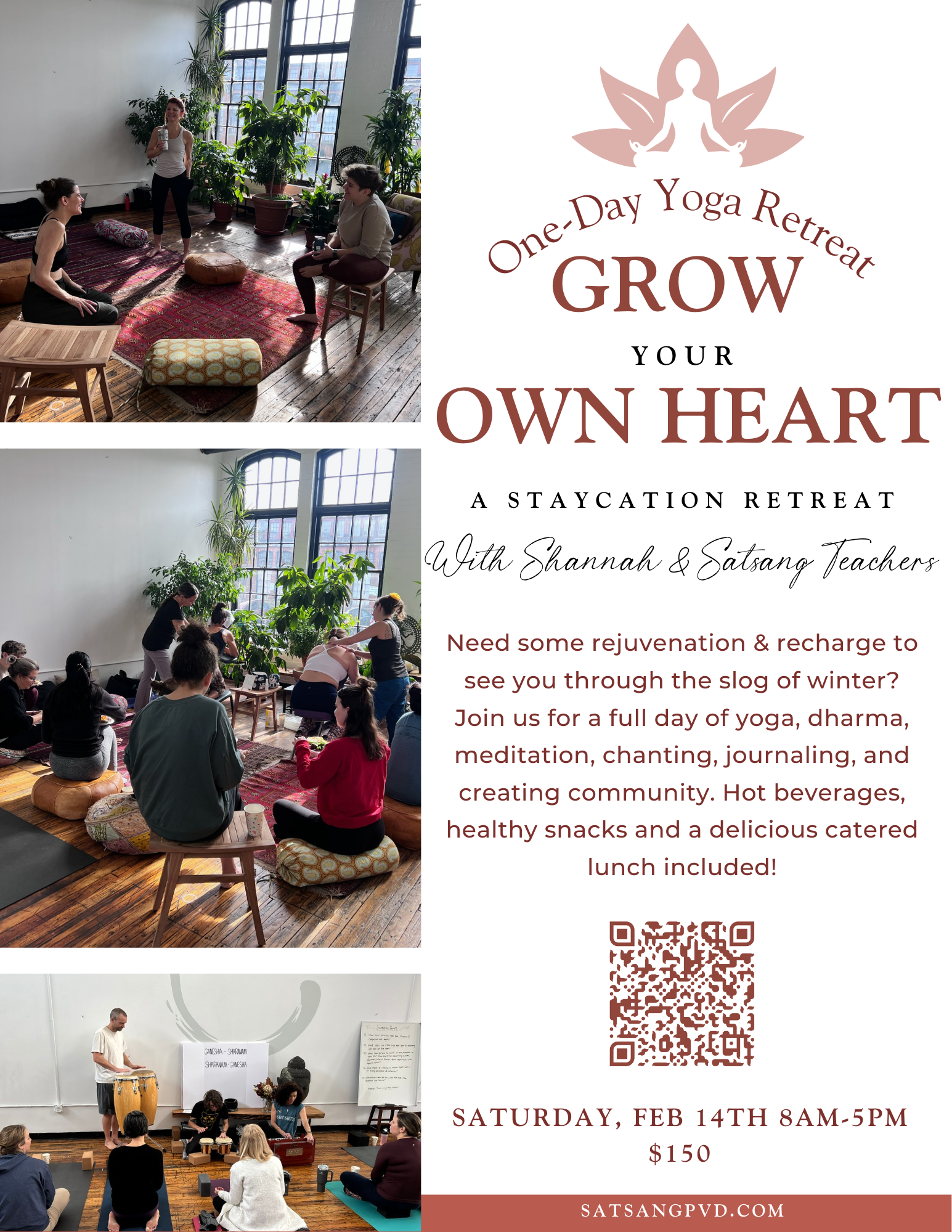 Grow Your Own Heart: One Day Yoga Retreat Saturday, February 14, 2026 8:00 AM 5:00 PM Satsang - yoga, meditation, dharma 999 Main Street Pawtucket, RI, 02860 United States (map) Google Calendar ICS REGISTER HERE